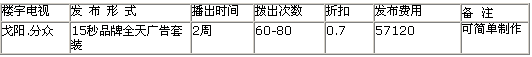 4、樓宇電視發(fā)布費(fèi): 57120元