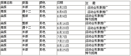 6月9日開始宣傳預(yù)熱,發(fā)起籃球嘉年華活動的征集,對整個活動進程進行掃描,版面不小于半版篇幅,6月11日為本次活動的開幕式,因此,在6月16日將用至少2個版進行本次活動的炒作,在活動進行當(dāng)中,計劃每期利用1個版面進行活動跟蹤報道,勢必吸引全城關(guān)注的目光,為參加本次活動的參賽隊伍盡情爆光,達到提升品牌的宣傳作用。