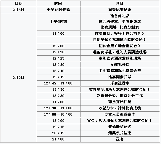 1、發球禮安排在9月9日上午10:00的時間安排方案