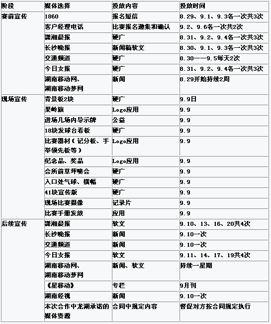 2)制作有湖南移動LOGO企業標識及龍湖LOGO的兩塊賽事專用宣傳廣告牌;負責橫幅、歡迎牌、POP牌的設計、制作(森廣源廣告協助);
