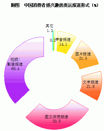此外,在媒體報(bào)道形式上,視頻影像形式是受眾最感興趣的報(bào)道形式,這將為網(wǎng)絡(luò)視頻和手機(jī)視頻迎來新的發(fā)展機(jī)遇,網(wǎng)絡(luò)、手機(jī)、戶外液晶、電子屏等新興媒介,而與鮮活的影像內(nèi)容相比,聲音、文字、圖片的報(bào)道形式的關(guān)注度相對(duì)較低,廣播和雜志等傳統(tǒng)媒體如何與新興媒體之間進(jìn)行互動(dòng)和合作將成為傳統(tǒng)媒體突圍的重要方向。