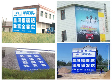 根據(jù)前期的市調(diào)發(fā)現(xiàn),微車消費者對戶外廣告接受度很高,僅次于電視。因此戶外廣告是福瑞達提高知名度、開拓二三級市場尤其是城鄉(xiāng)結(jié)合部和農(nóng)村市場的有效法寶。從2008年9月份開始,在8個基地市場份共刷墻60萬平方米以上。