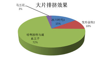 由圖可知,在某電影院《哈6》的播放場次數遠遠大于其他影片,占了總百分比的72,遠遠大于其他影片,因此《哈6》具有相當明顯的排擠效果。