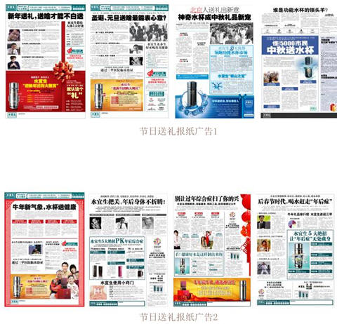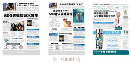 2008年中國營銷界的怪現象必然包括這么一條:水宜生前后花費近2000萬平面媒體費用,在全國主流媒體發布“打假聲明”,近千篇整版、半版廣告集中投放,讓造假者與競爭對手偃旗息鼓,更令他們意外的是,這樣的打假廣告,還可以帶來額外的直接銷售。據不完全統計,一個地級市每投放一篇打假整版廣告,可以接到150多條咨詢與訂購熱,成交200套以上,完全可以做到單版贏利!這就是公關與廣告結合后的瘋狂現象!